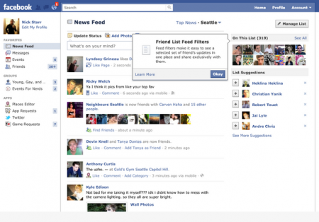 فيما وصفته العديد من المواقع التقنية بكونه مجرد تقليد لفكرة الدوائر circles التي يطرحها جوجل بلس ، قررت الفيس بوك المضي قدماً في إختبار نظام جديد لفلترة الأصدقاء في موجز الأخبار News Feed الخاص بالمستخدمين .