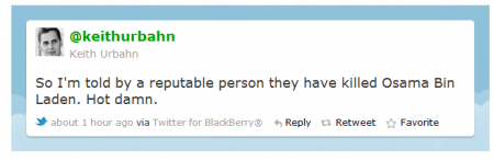 كعادة موقع تويتر الذي أصبح أسرع شبكة إخبارية في العالم ، سبق الجميع في بث نبأ مقتل زعيم تنظيم القاعدة  أسامة بن لادن .